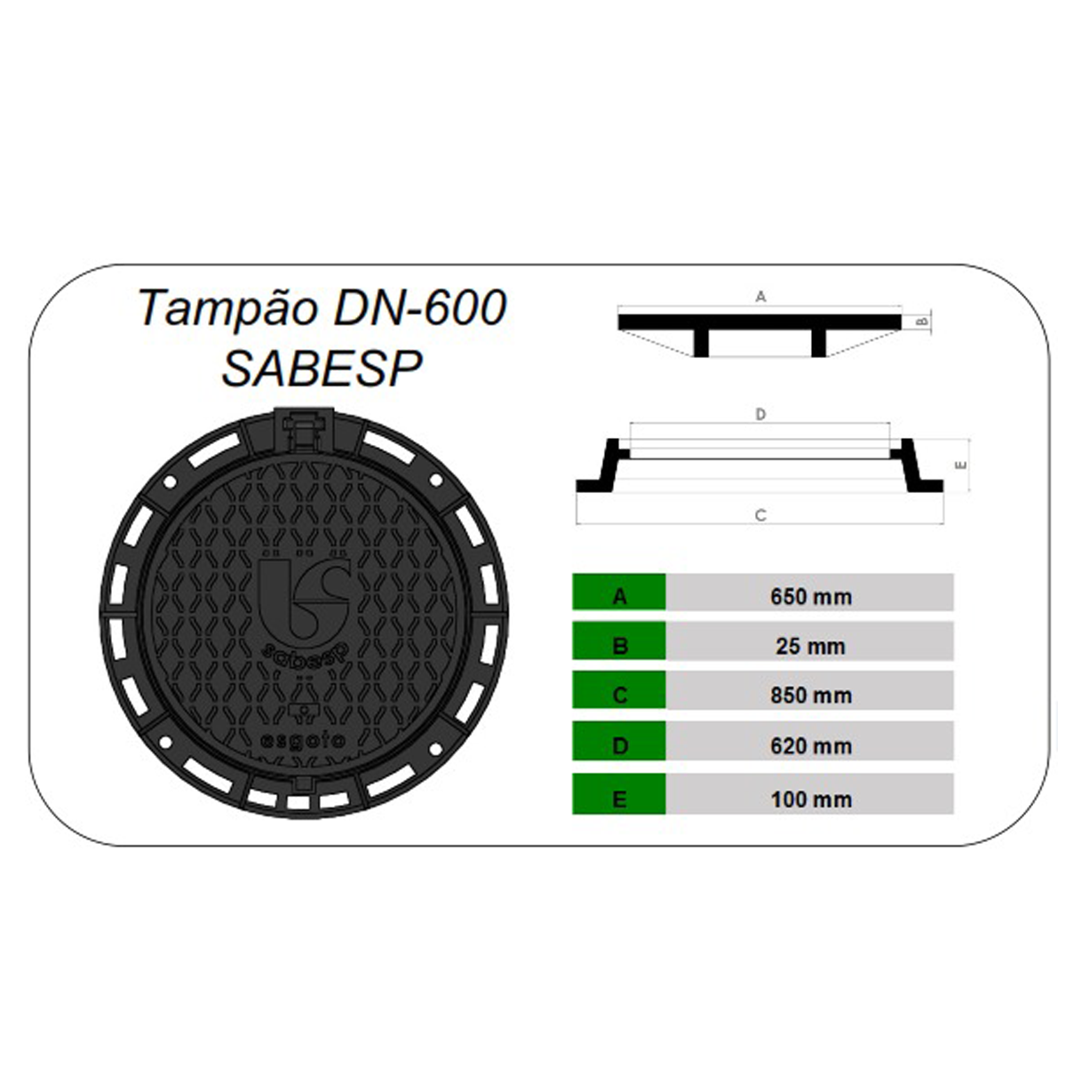 TAMPÃO DN 600 SABESP MAIOR